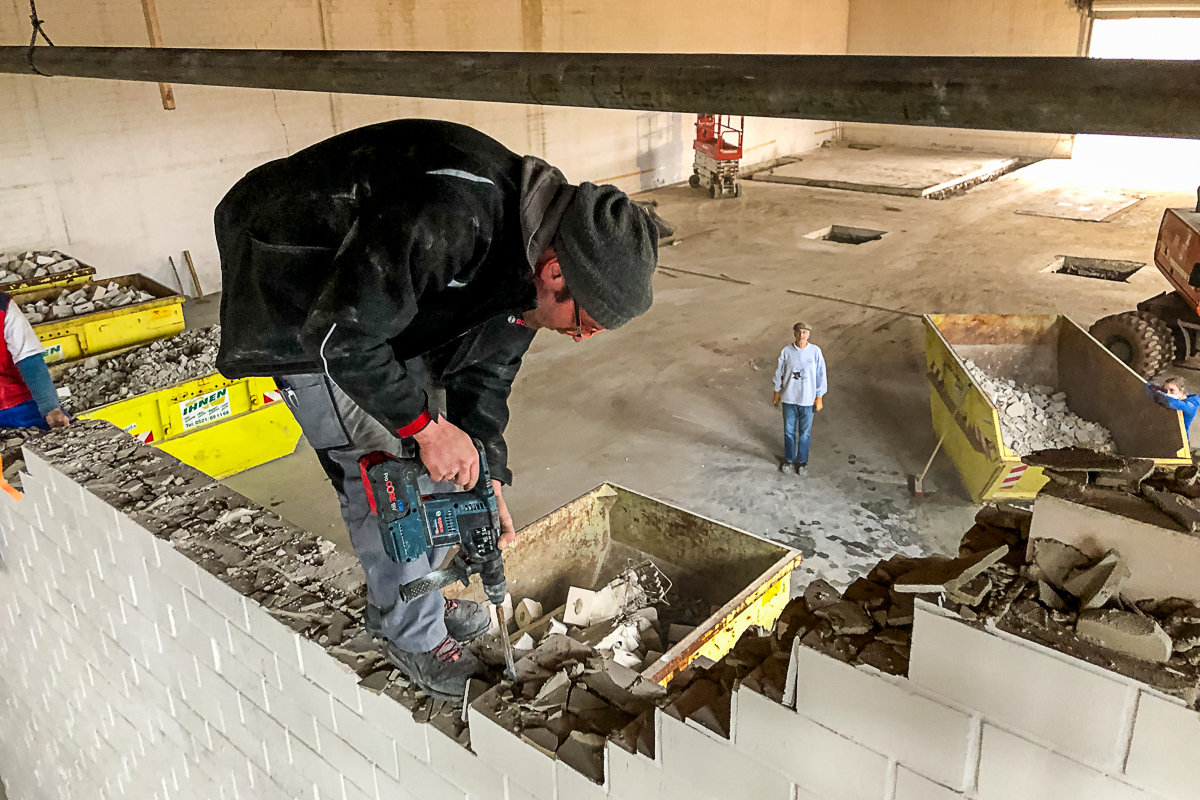 Die Abrissarbeiten sind nun beendet. Insgesamt 130 Tonnen an Müll und Schutt wurden in Eigenleistung von 45 verschiedenen Personen aus der Halle geschafft. Damit haben wir den ersten Meilenstein erreicht! Die nächsten Wochen werden wir es etwas ruhiger angehen lassen, da jetzt erstmal die Fachfirmen am Zug sind. Wenn es weiter geht werden wir uns bei euch melden. Vielen Dank für euren Einsatz! Euer Bauteam.